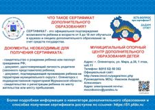 Сертификат предоставляет детям возможность получения дополнительного образования за счет бюджетных средств, как в государственных и муниципальных, так и в частных организациях. Для зачисления ребенка на образовательную программу направьте электронную заявку через Федеральную государственную информационную систему ЕПГУ(Единый портал государственных и муниципальных услуг), свой личный кабинет на ПФДО (Портал персонифицированного дополнительного образования Мурманской области) или назовите номер сертификата непосредственно в организации.