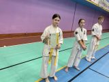 Хенкина Анастасия — сдала на 5 кю (оранжевый пояс с синей полоской).